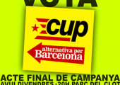 Unes 600 pesrones han participat a l'acte de cloenda de la campanya electoral que s'ha celebrar aquest vespre a Parc del Clot. L'acte ha comptat amb les intervencions de Txelui Moreno (portaveu de l'esquerra abertzale), Xavi Navarro (regidor de la CUP a l'Ajuntament de Barcelona) i Xavier Monge (cap de llista de la CUP-AxB), a banda d'un representant de la CUP de cada districte de la ciutat i la colla bastonera de Sant Andreu.